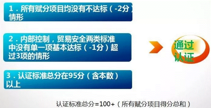 Step2:海关收到《适用认证企业管理申请书》后进行企业资料审核,根据《海关认证企业标准》对企业各项目进行打分,同时符合如下三个条件的视为通过认证。按照相关规定,这个时间不会超过90个自然日。