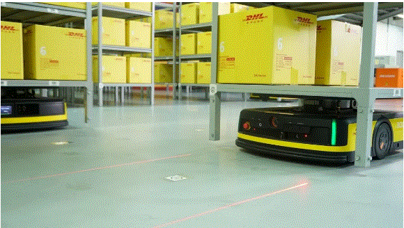 东莞DHL快递是中国首家采用AGV智能仓储解决方案的国际快递企业。DHL北亚枢纽是DHL在亚太地区最大的快件转运中心,每天处理货量12余万件。AGV智能机器人的投入使用,实现了查验快件全流程的自动查找和无人运输,缩短了查验等待时间,作业效率和场地使用率分别提升了30%和40%以上。投入使用的AGV移动机器人,配备有激光避障、超声距离检测及激光和视觉混合导航等最新技术。通过机器人控制系统与仓储管理系统和DHL自有系统的无缝衔接,实现24小时全方位管理仓储机器人。