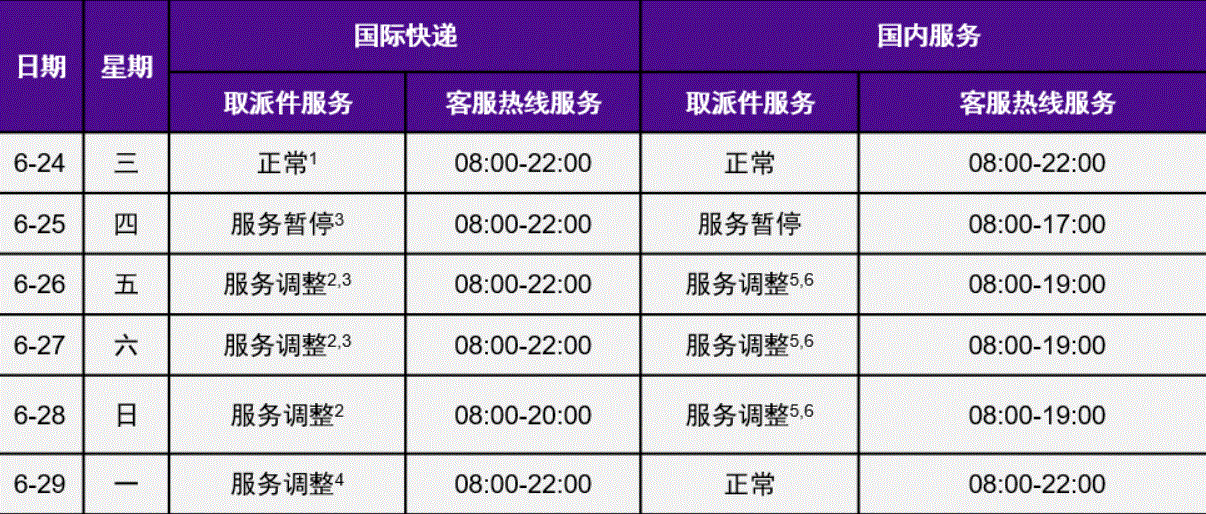 4. 2020年6月29日国际快递当天午前送达服务取消,将在18:00前送达。