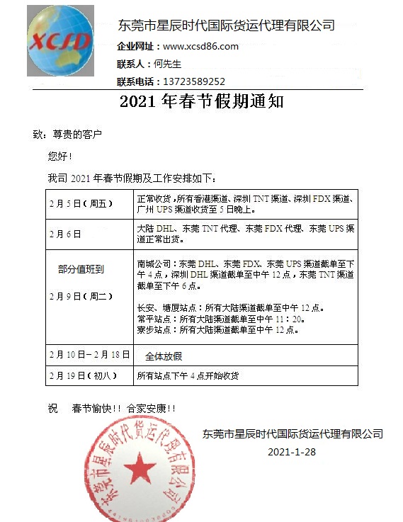 2021春节放假通知-东莞国际快递