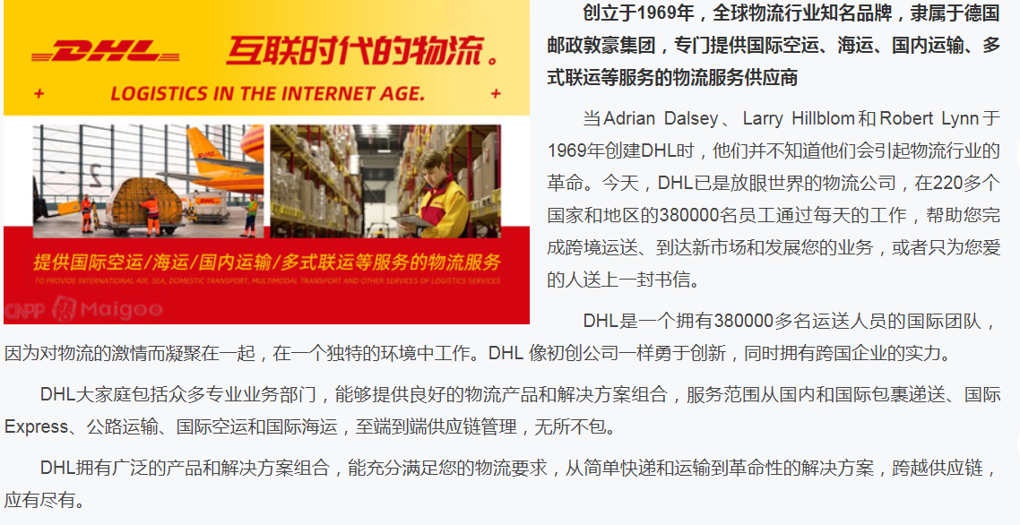【DHL快递】品牌介绍→DHL国际快递_DHL国际物流_广东东莞