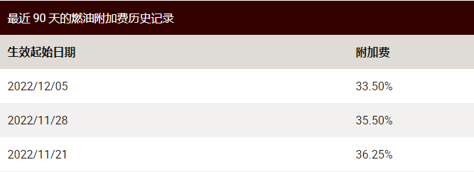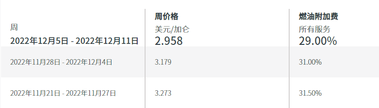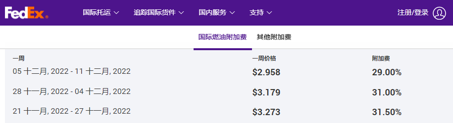 12月12-17日,FedEx联邦快递燃油附加费费率为:29%,与上周相比下降了2%。