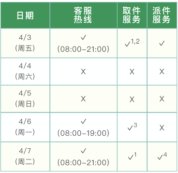 UPS国际快递在2026年清明节假期(4月4日至4月6日)的服务安排如下: