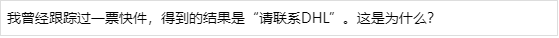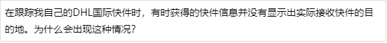 出于操作的原因,DHL会周期性的重复使用快件的运单号码。因此一旦相同运单号码的两个快件同时在运送途中时,偶尔就会导致两条快件记录同时在系统中存在。DHL正在努力消除这种现象,但是同时,我们也郑重的向您保证,尽管系统中的信息可能出现混乱,但您实际发送的快件将会得到与本公司网络内其他快件完全一致的细心的关注,确保能够到达正确的目的地。