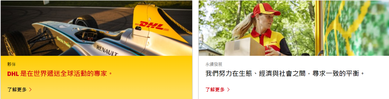 DHL 在全球 220 個國家及地區聯繫起人群。在超過 395,000 員工協力推動下,我們提供整合服務及客製化解決方案,管理並運輸信件、貨物及資訊。